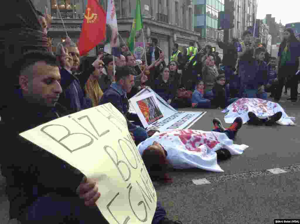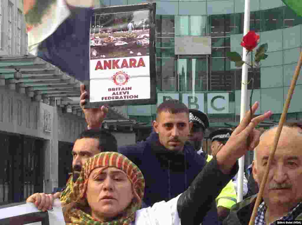 Londra'da 3000'den fazla kişi, bir çok dernek ve sivil toplum örgütü, Ankara'da Cumartesi günü yapılan bombalı saldırıyı kınamak için protesto gösterileri gerçekleştirdi.Saldırı İngiltere Başbakanlık Binası önünde de protesto edildi
