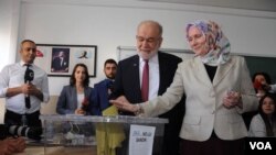 Saadet Partisi Genel Başkanı ve cumhurbaşkanı adayı Temel Karamollaoğlu, oyunu Çankaya Lisesi’nde eşi Ayşe Yasemin Karamollaoğlu birlikte kullandı.