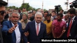 Yıldırım ve beraberindekiler daha sonra, mezarlığa giderek, patlamada ölenlerin mezarlarını ziyaret etti. AK Parti Genel Başkan Yardımcısı Eker, kadınların Kürtçe ağıtlarını Yıldırım'a tercüme etti. Yıldırım, Kürtçe ağıt yakan bir kadının elini tutarak, teselli etmeye çalıştı.
