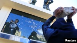 Binanın ana girişi önünde toplanan binlerce kişi protesto gösterisi düzenliyor. Göstericilerin binanın güvenlik duvarlarını aşmaya çalıştıkları belirtiliyor. İçerideki güvenlik görevlilerin bina girişine göstericileri dağıtmak üzere sersemletici el bombası attıkları ifade ediliyor. Reuters Haber Ajansı'na konuşan görgü tanıkları en az 4 patlama sesi duyduklarını söylüyorlar.