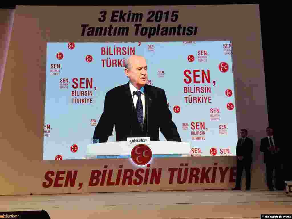 MHP Genel Başkanı Devlet Bahçeli, seçim bildirgesini tanıttığı toplantıda 7 Haziran sonrasında koalisyon pazarlığına yanaşmadığı suçlamasına karşılık “Türkiye’nin üst üste 1 Kasım’lar yaşamaması için biz sorumluluğa varız” dedi