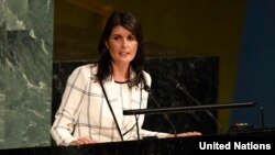 ABD’nin Birleşmiş Milletler Daimi Temsilcisi Nikki Haley, Genel Kurul'a hitaben yaptığı konuşmada karar tasarısının tek taraflı olduğunu öne sürdü. Tasarıda tüm meydana gelen olayların tek sorumlusu olarak İsrail’in gösterildiğini kaydetti. Tasarıda, Hamas'ın hiçbir şekilde adının geçmediği, bu tür kararların barış sürecine katkısı olmayacağını savundu. Haley, ''Türk dostlarım da bu kararın kabul edilmesinin hiçbir şeyi değiştirmeyeceğini farkında,'' diye konuştu.