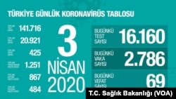 ''Son 24 saatte 16 bin 160 test yapıldı. Toplamda 140 bin 716 test yapılmış oldu. Son 24 saatte 2 bin 786 pozitif vaka daha tespit ettik. Toplam vaka sayımız 20 bin 921 oldu.''