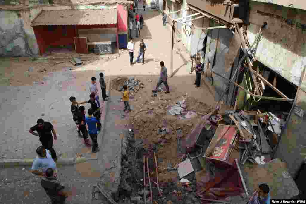 Sur İlçesinin Hasırlı Mahallesi hafta sonu yaşanan çatışmaların en yoğun olduğu bölgeydi. Dört sokağın birleştiğinoktada büyük bir çukur açılmış. Mahallede çatışmaların sona ermesinin ardından görevliler onarım çalışmalarına başladı.