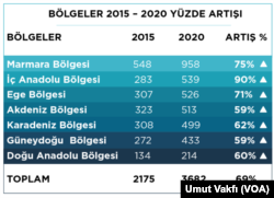 2020 yılında, 2019’a göre 59 şiddet olayının daha yaşandığı kaydedilirken, son beş yılda silahlı şiddet olaylarındaki artış yüzde 69 olarak kayda geçti. En çok artışın yüzde 90’la İç Anadolu Bölgesi’nde yaşandığı görülürken son 5 yılda Marmara’da yüzde 75, Ege’de yüzde 71 artış dikkat çekti. Büyük nüfus yoğunluğuna sahip Marmara Bölgesi, 2020’de de Türkiye genelinde en çok suçun işlendiği bölge olurken ilk sıraya İstanbul yerleşti.