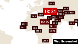 Hapisteki 269 gazetecinin ülkelere göre dağılımı :