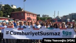 Cumhuriyet gazetesi çalışanlarından 11’i tutuklu, 5’i tutuksuz yargılanıyor. Hakkında yakalama kararı bulunan Cumhuriyet gazetesi eski genel yayın yönetmeni Can Dündar ise Türkiye dışında bulunuyor.