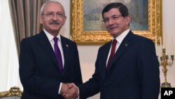 Başbakan Davutoğlu, TBMM’deki siyasi partiler ile görüşeceğini açıkladıktan sonra HDP Eş Başkanları Selahattin Demirtaş ve Figen Yüksekdağ ile bir araya gelmekten vazgeçmişti. Davutoğlu, bugün ilk görüşmesini ana muhalefet lideri Kemal Kılıçdaroğlu ile gerçekleştirdi. CHP Lideri’nin makam odasında yapılan görüşme, yaklaşık 2 saat 15 dakika sürdü. Görüşmede, Davutoğlu’na, Başbakan Yardımcısı Lütfi Elvan, AK Parti Genel Başkan Yardımcısı Mehmet Ali Şahin, AK Parti Genel Başkan Yardımcısı ve Parti Sözcüsü Ömer Çelik ile AK Parti Grup Başkanvekili Naci Bostancı eşlik etti. Ev sahibi konumundaki CHP tarafında ise CHP genel başkan yardımcıları Haluk Koç, Selin Sayek Böke ve Bülent Tezcan ile CHP Grup Başkanvekili Engin Altay hazır bulundu.