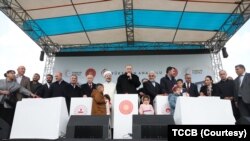 Konuşmaların ardından Erdoğan ve törene katılan liderler konutların anahtarlarını hak sahiplerine teslim etti. Erdoğan anahtar almaya gelen ailelerin çocuklarına harçlık verdi.