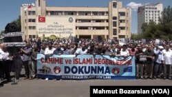 Ancak Mızraklı ve Yılmaz’ın bu açıklamaları İslami kesimi tatmin etmedi. Cuma namazından sonra Büyükşehir Belediyesi önünde toplanan İslami STK’ların temsilcileri protesto gösterisi yaptı. Tekbir ve sloganlar eşliğinde toplanan grup adına açıklama yapan Mücahit Koyuncu, İslami değerlere dokunulmaması çağrısı yaptı. Koyuncu, “Sizler göreve geldikten sonra bu camilerin bulunduğu alanları park alanları yaparak oralarda yapımı devam eden camileri kaçak yapı durumuna düşürdünüz. Önce cami alanlarını park alanı yapmak için imar planlarında değişiklik yaptınız yetmedi Diyarbakır fatihi büyük sahabe İyaz Bin Ganem'in adını taşıyan caddenin ismini değiştirdiniz. Kamuoyunun beklentisi bu yanlışların bir an önce düzeltilmesidir. İslam'ın kutsallarına dokunulmamalıdır. Buradan çağrıda bulunuyoruz. Bulunduğunuz makamlar halka hizmet makamlarıdır. İdeolojik zemininizde halkı dönüştürecek, bir kentin kimliğini değiştirecek değirmenler değildir” dedi.