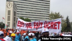 Ankara’da kutlamalar iki ayrı meydandaydı. Türk-İş Konfederasyonu ev sahipliğinde Anadolu (Tandoğan) Meydanı’ndaki kutlama, üye sendikalar ve Büyük Birlik Partisi ile Vatan Partisi’nin katılımıyla gerçekleşti. Türk-İş Konfederasyonu, Türkiye’de son döneme değin en çok üyeye sahip sendikal hareket olarak biliniyordu ancak ILO’daki (Uluslararası Çalışma Örgütü) temsil hakkını AKP Hükümeti’ne yakınlığıyla Memur-Sen’e kaptırdı. Sahneden siyasetçiler gibi ellerindeki kırmızı karanfilleri kendisini dinleyen işçilere sunan Türk-İş Genel Başkanı Ergün Atalay, sendika olarak ILO’daki pozisyonlarını kaybetmelerine ilişkin konuşmasında özetle şunları ifade etti: