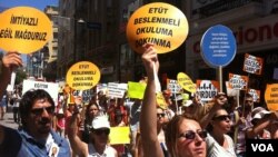 Biri pusette diğer ilkokul talebesi iki çocuğuyla yürüyen Güreş Yüksel, elinde tuttuğu ‘ben okulda annem işyerinde’ dövizine gözüme sokarak, “sorunumuza sahip çıkın” diyor. Memlekette –henüz dört aylık da olsa- çocuk sahibi olan, üstelik de eşi de çalışan bir gazetecinin bu meseleye uzak kalması ne mümkün.