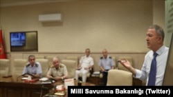 MSB’nin açıklamasına göre; Genelkurmay Başkanı Orgeneral Yaşar Güler, Kara Kuvvetleri Komutanı Orgeneral Ümit Dündar, Deniz Kuvvetleri Komutanı Oramiral Adnan Özbal ile Hava Kuvvetleri Komutanı Orgeneral Hasan Küçükakyüz toplantıda hazır bulundu. Bakan Akar, toplantı sırasında ABD ile yapılan görüşmelerde Türkiye’nin Suriye konusundaki tüm görüşlerini muhataplarına bir kez daha ilettiklerini vurguladı. Bu noktada Türkiye’nin Washington’dan artık somut yanıtlar beklediğini işaret eden Akar, “Bütün görüşlerimizi, tekliflerimizi gelen heyete ilettik. Bunları inceleyip cevaplarını derhal vermelerini bekliyoruz. Bir gecikmeye tahammülümüz olmadığını, gerekirse inisiyatifimizi kullanacağımızı kendilerine bir defa daha vurguladık” mesajını verdi.