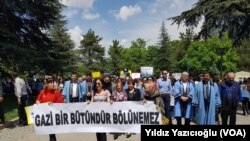 Gazi Üniversitesi öğretim üyeleri ve öğrencileri, kendi okulları dahil bazı üniversitelerin bölünerek yenilerinin kurulmasını öngören yasal düzenlemeye karşı yürüyüş düzenledi ve basın açıklaması yaptı.