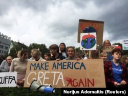 Thunberg’in eylemine katılan Amerikalı öğrenciler ABD Başkanı Donald Trump’ın iklim değişikliği politikalarını eleştiren pankartlar taşıdı, sloganlar attı.