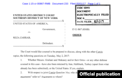 New York’ta 13 aydır tutuklu olarak yargılanan İran asıllı Türk işadamı Rıza Sarraf’ ın yarın Güney Bölgesi Federal Mahkemesinde yapılacak çıkar çatışması duruşmasıyla ilgili Hakim Richard Berman, tartışılması gereken ve açıklığa kavuşmasını istediği bazı soruları kapsayan yazılı emrini ABD Adalet Bakanlığı’na bağlı elektronik sistemde taraflara iletti.