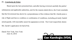 Hakim Berman, kefalet duruşmasından tam iki hafta sonra, bu sabah saatlerinde, ‘Amerikan Federal Adalet Sistemi’ne’ girilen ekleriyle birlikte 35 sayfalık gerekçeli karar metninde kefalet talebini reddettiğini bildirdi.