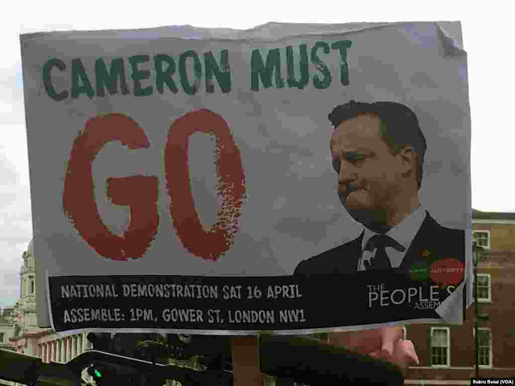 Aile bireylerinin adı Panama belgelerinde yer alan İngiltere Başbakanı David Cameron’un istifasını isteyen göstericiler Londra’da eylem düzenledi. Göstericiler Başbakanlık konutunun bulunduğu Downing Sokağı’nda toplanarak 'Cameron istifa, Muhafazakar Parti hükümeti istifa' çağrısı yaptı
