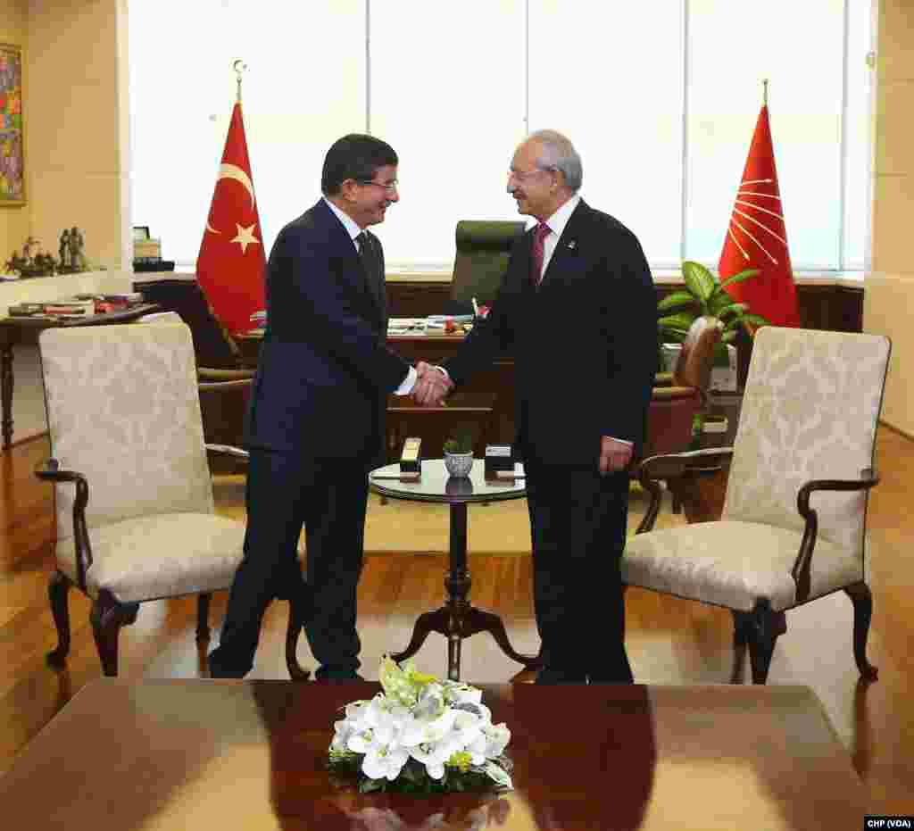 Adalet ve Kalkınma Partisi lideri Ahmet Davutoğolu ve Cumhuriyet Halk Partisi Genel Başkanı Kemal Kılıçdaroğlu arasındaki koalisyon görüşmeleri