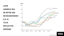 Uluslararası Para Fonu (IMF) verilerine göre, geçen yıl yüzde 9,8’le dünyada en yüksek enflasyonun yaşandığı bölge olan Latin Amerika için bu yılki enflasyon beklentisi yüzde 11,2.