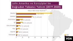 BM Latin Amerika ve Karayipler Ekonomi Komisyonu’nun (ECLAC) son raporuna göre 2019 yılında 161 milyar dolara yakın olan doğrudan yabancı yatırımın (DYY) bu yıl 72 ila 88 milyar dolar arasında kalması bekleniyor.
