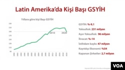 ECLAC raporlarında, pandemi sürecinde kişi başı GSYİH’nin yüzde 9,9 oranında gerileyerek 10 yıl geriye gittiği, ayrıca ayda 143 dolardan daha az gelire sahip olan yoksul sayısının 231 milyona ulaştığı; çoğunluğu küçük ve orta ölçekli 2,7 milyon işyerinin kepenk kapattığı; ihracatın yüzde 14 azaldığı; kayıt dışı ekonominin yüzde 54’lere ulaştığı tespitleri yapılıyor.