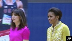 Barack Obama’nın eşi Michelle Obama, Samantha Cameron’la birlikte Washington’daki bir üniversitede bir mini olimpiyat düzenledi.