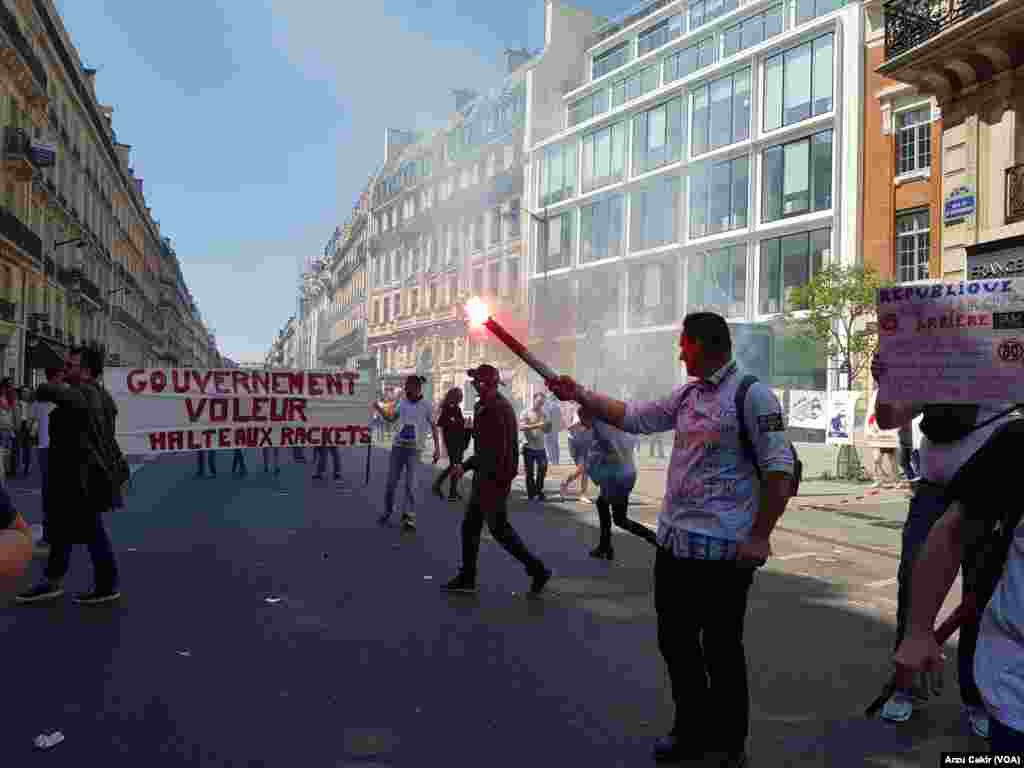Fransa Cumhurbaşkanı Emmanuel Macron'un cumhurbaşkanı seçilmesinin birinci yıldönümü muhalefet tarafından protesto edildi. Eyleme “kutlama” adı verilse de nihai amacı liberal cumhurbaşkanını protesto amacı taşıyordu