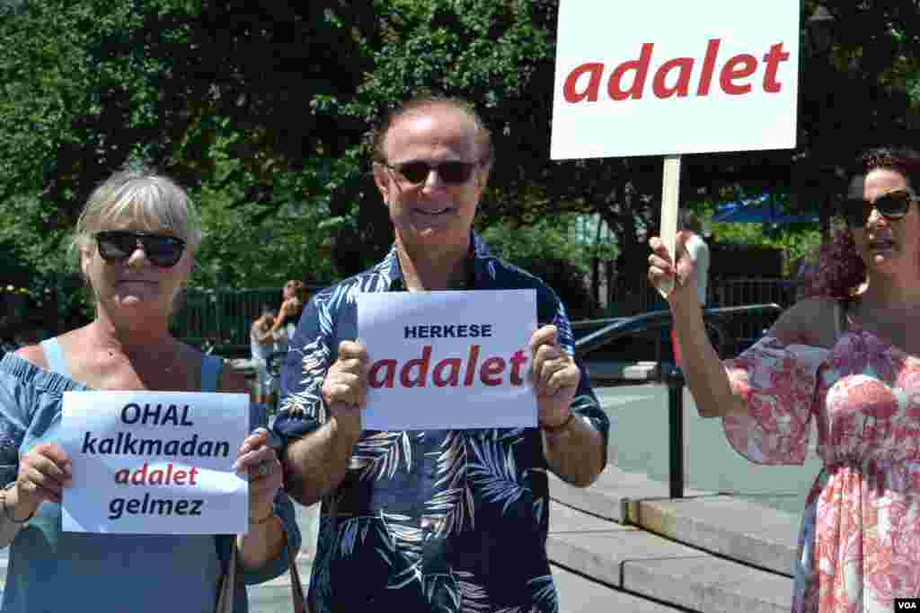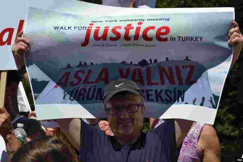CHP Genel Başkanı Kemal Kılıçdaroğlu’nun 12 gün önce başlattığı, “Adalet Yürüyüşü”ne destek amacıyla New York’ta Union Meydanı’nda toplanan Türkler, marşlar söyledi, taşıdıkları dövizler ve attıkları sloganlarla yürüyüşe destek verdi