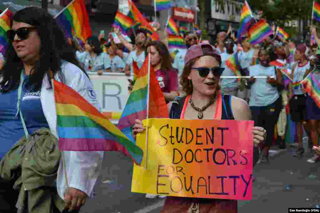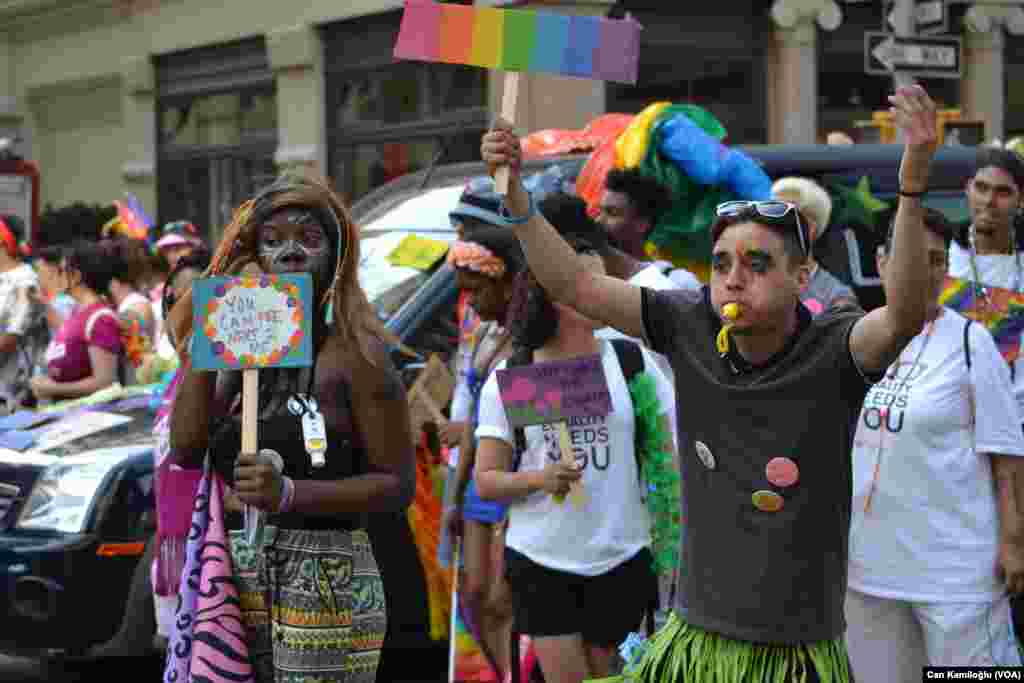 New York’ta dün düzenlenen 2016 Onur Yürüyüşü’nde, İstanbul’un aksine polisle yürüyüşe katılanlar arasında yaşanan sıcak dostluklar güne damgasını vurdu