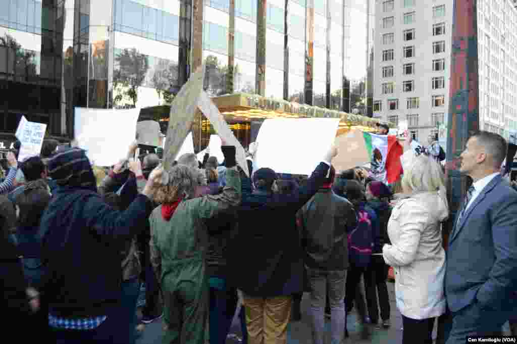 Donald Trump’ın başkan seçilmesinin ardından ABD’nin çeşitli eyaletlerinde başlayan protesto gösterileri New York’ta da sürüyor. Gösterilerin yapıldığı 5. Cadde’deki çok sayıda ünlü markaya ait dükkanlara polis ve gizli servisin uyguladığı güvenlik önlemleri nedeniyle günlerdir girilemiyor