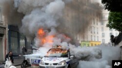 Başkent Paris'te polislerin eylem yaptığı Republique yakınlarındaki Quai de Valmy yolunda devriye gezen bir polis aracını gören 150 kadar göstericiden 10'u polis aracına saldırdı. Görgü tanıklarının ifadelerine göre, yüzleri maskeli bir grup genç, içinde 2 ya da 3 polis görevlisi olduğu belirtilen aracın camlarını kırmaya çalışınca, polisler aracı terkettiler. Gençler, boş kalan araca molotof kokteyli atarak ateşe verdiler. Olayı gören çevik kuvvet ekipleri hızla alana gelerek göstericileri göz yaşartıcı gaz ile dağıttı. Aracı terkeden polisler ise hafif yaralı olarak, bölgede görev yapan polislere sığındılar.