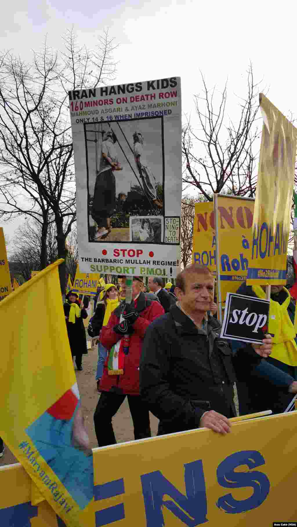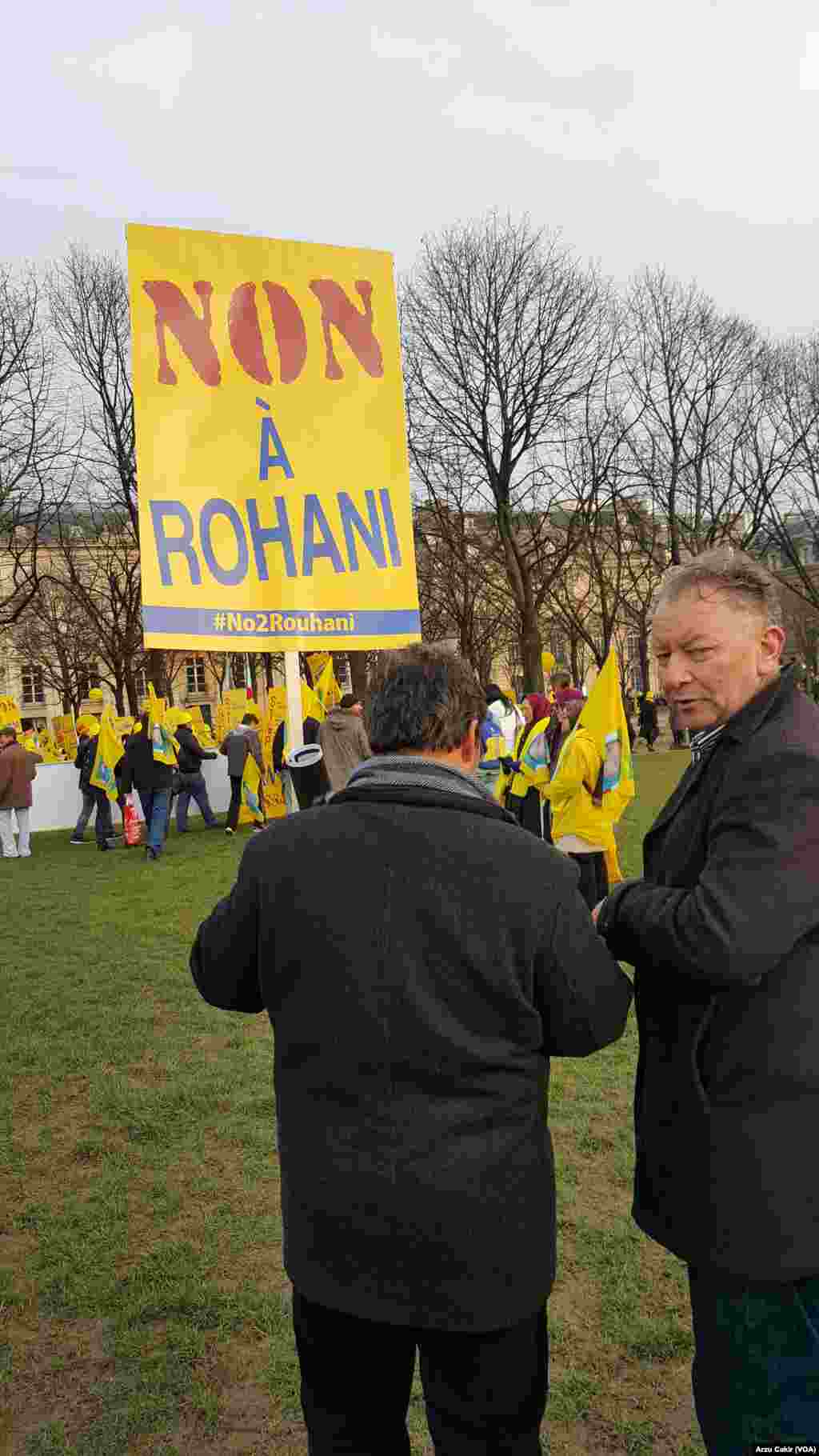 İran Cumhurbaşkanı Ruhani Elysee Sarayı'nda Fransa Cumhurbaşkanı Hollande ile görüşürken, İranlı muhalifler de Fransız Meclisi ve Dışişleri Bakanlığı'nın kesiştiği noktada protesto gösterileri düzenlediler. Ruhani'nin molla rejiminin bir temsilcisi olduğunu savunan binlerce İranlı muhalif, özellikle idam cezalarına karşı çıkarak, Ruhani döneminde 2 bin kişinin idam edildiğini belirtti. Paris'te merkezi bulunan Femen grubu da, İran'daki idamları protesto etmek için temsili infaz sahnesi sergileyerek Ruhani'yi protesto ettiler
