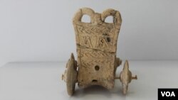 Bronz çağına ait bugüne kadar bulunabilen az sayıdaki oyuncaklardan biri olan antik arabanın zamanın şartlarına göre iyi bir durumda olması dikkat çekiyor. Oyuncak arabanın o dönemlerde erken yaşta ölmüş olan bir yönetici çocuğuna ait olduğu düşünülüyor.
