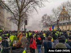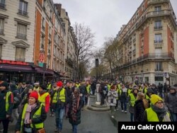 Paris'te sabah saatlerinde Invalides Meydanı'nda toplanan Sarı Yelekliler, 12.00'de İtalya Meydanı'na yürüyüşe geçti. İtalya Meydanı'nda farklı bir güzergahla Montparnasse üzerinden yeniden Invalides'e geri dönen eylemciler 15 km'lik bir yürüyüş gerçekleştirdi. Yürüyüşte yine Cumhurbaşkanı Emmanuel Macron'un istifasını isteyen ve polis şiddetini protesto eden sloganlar atıldı. Kortej güvenliğini kollarına beyaz bant takan Sarı Yelekli görevliler sağlayınca, yürüyüş boyunca polisle çatışma gerçekleşmedi.