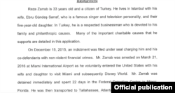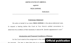 New York Güney Bölgesi Savcısı Preet Bharara tarafından hakkında hazırlanan iddianame sonrasında iki ay önce Miami’de yakalandıktan sonra New York’ta hakim karşısına çıkan Rıza Sarraf’ın kefaletle serbest bırakılma talebi mahkemeye sunuldu.