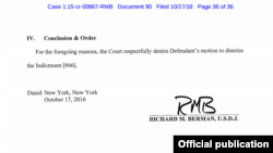 New York Güney Bölgesi Federal Mahkeme Hakimi Richard Berman, Sarraf’ın geçtiğimiz aylarda yaptığı başvuruyu 36 sayfalık gerekçeli kararında geri çevirdi.