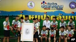 Basın toplantısında çocukların yanında doktorları, onları mağaradan kurtaran Tayland deniz piyadeleri ve diğer kurtarma ekipleri vardı.