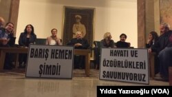 Aysel Tuğluk, “Yeterince öldük, yeterince acı çektik. Çok geç olmadan barış adına sözlerimizi söylemeliyiz” derken; Sebahat Tuncel, “Sessizlik öldürür, biz sessiz kaldıkça birileri ölecek. Buna dur demek hepimizin sorumluluğu. Bir an önce müzakere ve çözüm sürecine dönülmeli” diye konuştu.