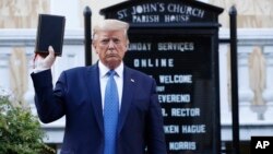 Bu açıklamanın ardından ABD Başkanı, polisin boşalttığı Lafayette Parkı'nı yürüyerek geçti ve bölgeye Pazar gecesi protesto olayları sırasında bodrum katında yangın çıkan tarihi Saint John Kilisesi önünde elinde İncil’i tutarak fotoğraf çektirdi.