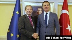 AB Bakanı Ömer Çelik ve Hahn, heyetlerarası görüşmeler öncesinde ortak basın toplantısı düzenledi.