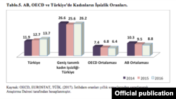 Kadın emeği bakımından eşitsizliği vurgulayan raporda, “Türkiye’de kadınların işgücüne katılma düzeyi, OECD ve AB’ye üye ülke ortalamalarının çok altındadır. Yıllık verilere göre, 2016 yılında kadınların işgücüne katılma oranı Türkiye’de yüzde 32,5 iken; OECD üye ülke ortalamalarında yüzde 51,9, AB üye ülke ortalamalarında yüzde 46’dır” deniliyor.