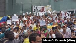 Başkent Caracas’ta Birleşmiş Milletler Kalkınma Programı Ofisi önünde toplanan ve çoğunlukla “işkence, ölüm ve açlığa hayır” sloganı atan göstericiler, insan hakları ihlallerine ve ülkede yaşanan krizin olumsuz sonuçlarına dikkat çektiler.