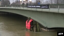 Çevreci örgütler, küresel ısınma sorununa dikkat çekmek için, Paris’te Seine nehrinin su seviyesini ölçmek için asırlardır barometre olarak kulanılan ünlü Zouave anıtına ‘can kurtaran yeleği’ giydirdiler.