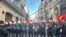 Cadde üzerinde bir AVM’ye “Boyun Eğme” pankartı açan yaklaşık 500 TKP’ üyesinin eylemi yaklaşık 5 dakika sürdü. Polis kısa bir süre sonra biber gazı ve kalkanlarla gruba müdahale etti